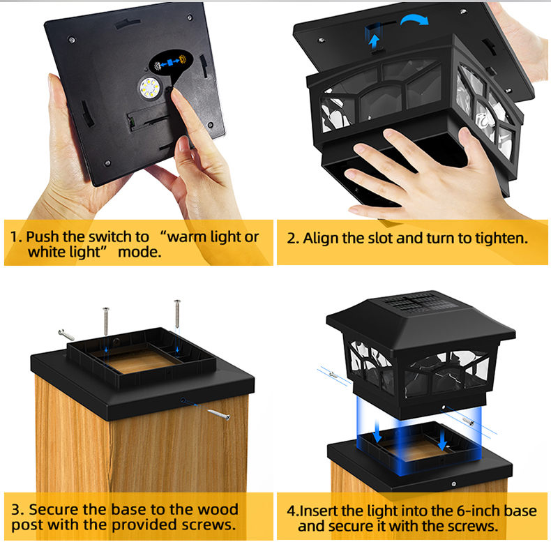 4. instalação simples, a luz solar de parede externa pode ser montada na parede com os parafusos fornecidos em segundos, sem necessidade de cabo ou fio.