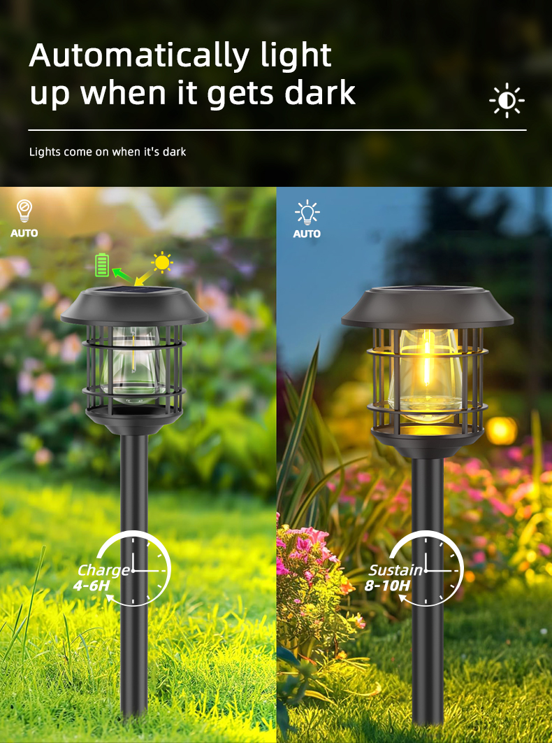 As luzes solares para pátio à prova d'água ao ar livre da Landsign são feitas de material à prova d'água, o que garante que podem ser usadas normalmente mesmo em dias chuvosos. Sistema fotossensível inteligente, carregamento automático durante o dia, acende automaticamente após escurecer.